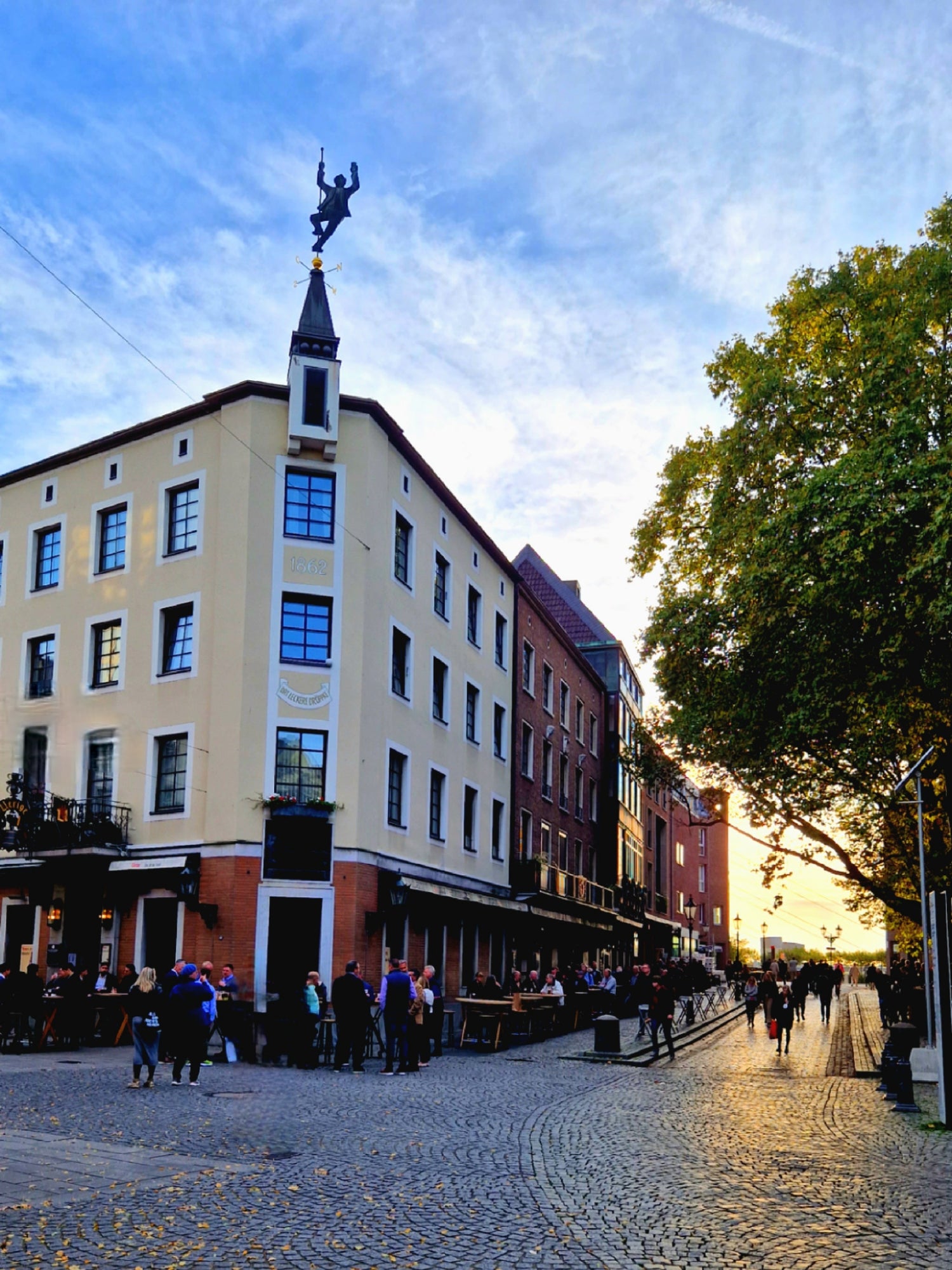 Die seit 1862 bestehende Hausbrauerei "Uerige“ (uerig = Düsseldorfer Platt für "schlecht gelaunt“) befindet sich in prominenter Altstadtlage an der Rheinstr. / Ecke Bergerstr., in direkter Nähe zum Rhein. Auf der weitläufigen Terrasse genießen bei gutem Wetter hunderte Düsseldorfer und Touristen „dat leckere Dröppke“. Das Uerige Alt zählt mit seinen ca. 50 Bittereinheiten zu den bittersten Bieren Deutschlands und ist nicht zuletzt deshalb weit über die Grenzen Düsseldorfs hinaus bekannt. Auch die Toten Hosen treffen sich hier schon mal um "das Alt der Stadt“ zu trinken.